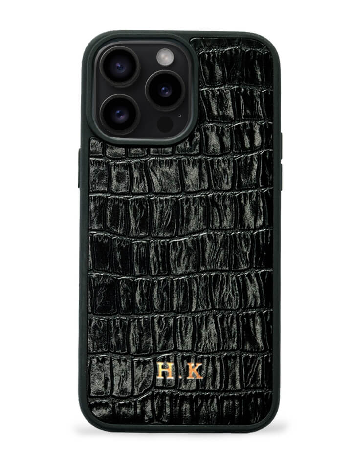 Deri iPhone Kılıf 15 Pro Max Siyah Croco