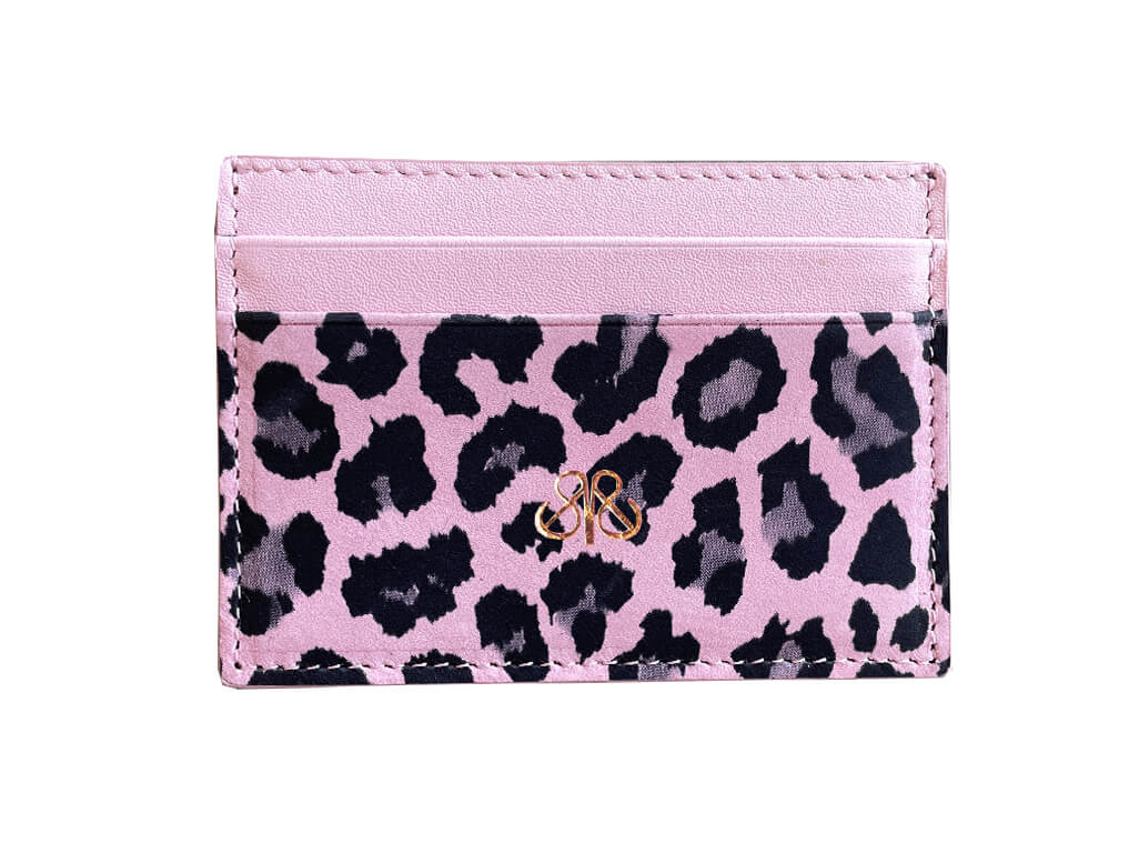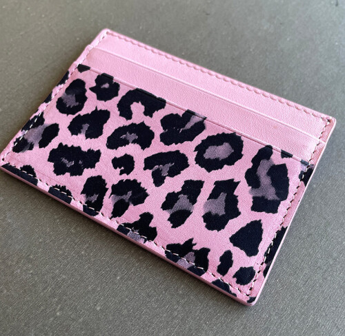 Leopar baskılı %100 dana derisi klasik kartlık