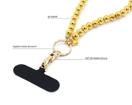 Altın metalik boncuklar ile telefonunuz çok daha şık. Fonksiyonel, kullanımı kolaydır ve çoğu telefon kılıfına takılabilir, eklenti parçasıyla beraber satılmaktadır. Flex kılıflarımız ile uyumludur.